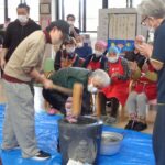 一つは機械でもうひとつは杵でみんな力を合わせつきましたよ☆