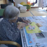 日常では壁画の制作、機能訓練、洗濯物干し、畳み、清掃のお手伝いなど自立支援を念頭に出来ることは、お手伝いをして頂いています。