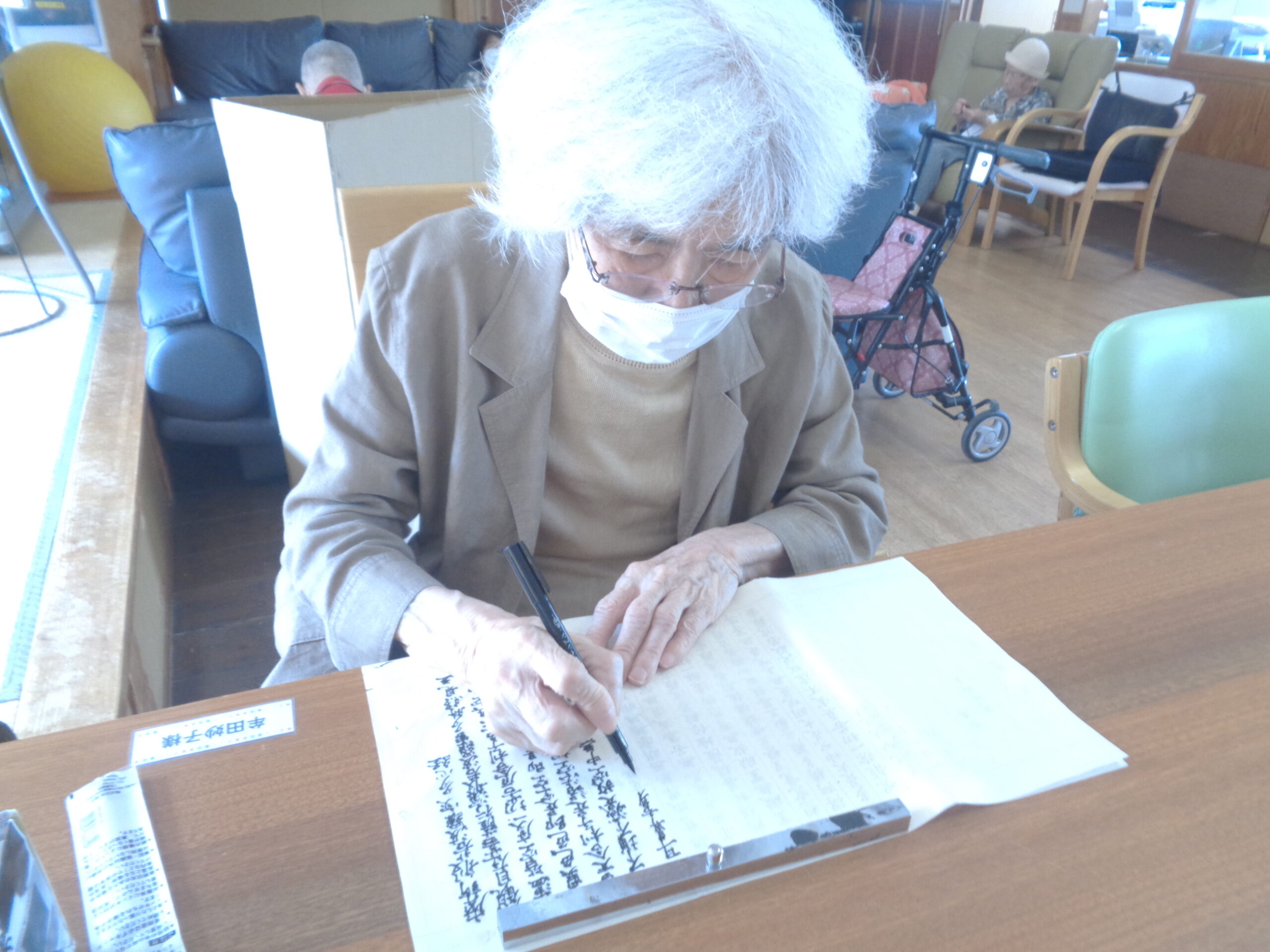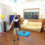 日常は利用者様とともに花の水やり、趣味活動をしています。またゲーム、誕生会などの行事もありました。誕生会で9月生まれの方1人、お祝いしました。9月27日には、敬老会、ふれあい祭りが有りました。