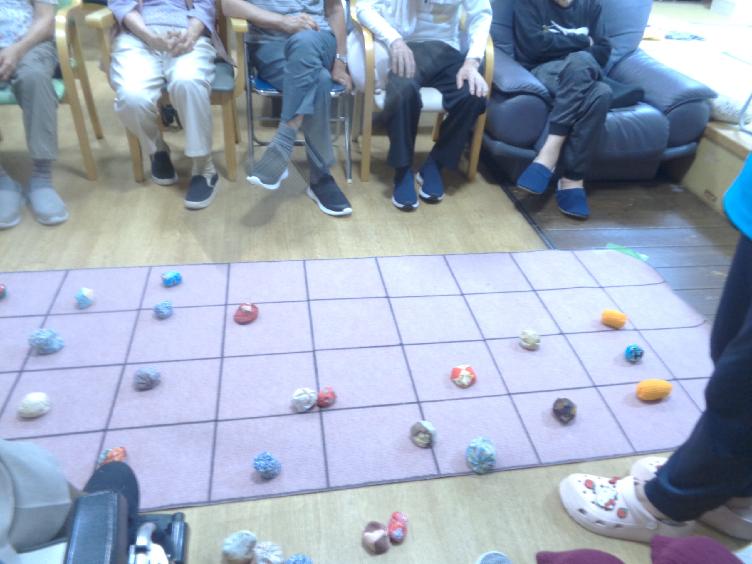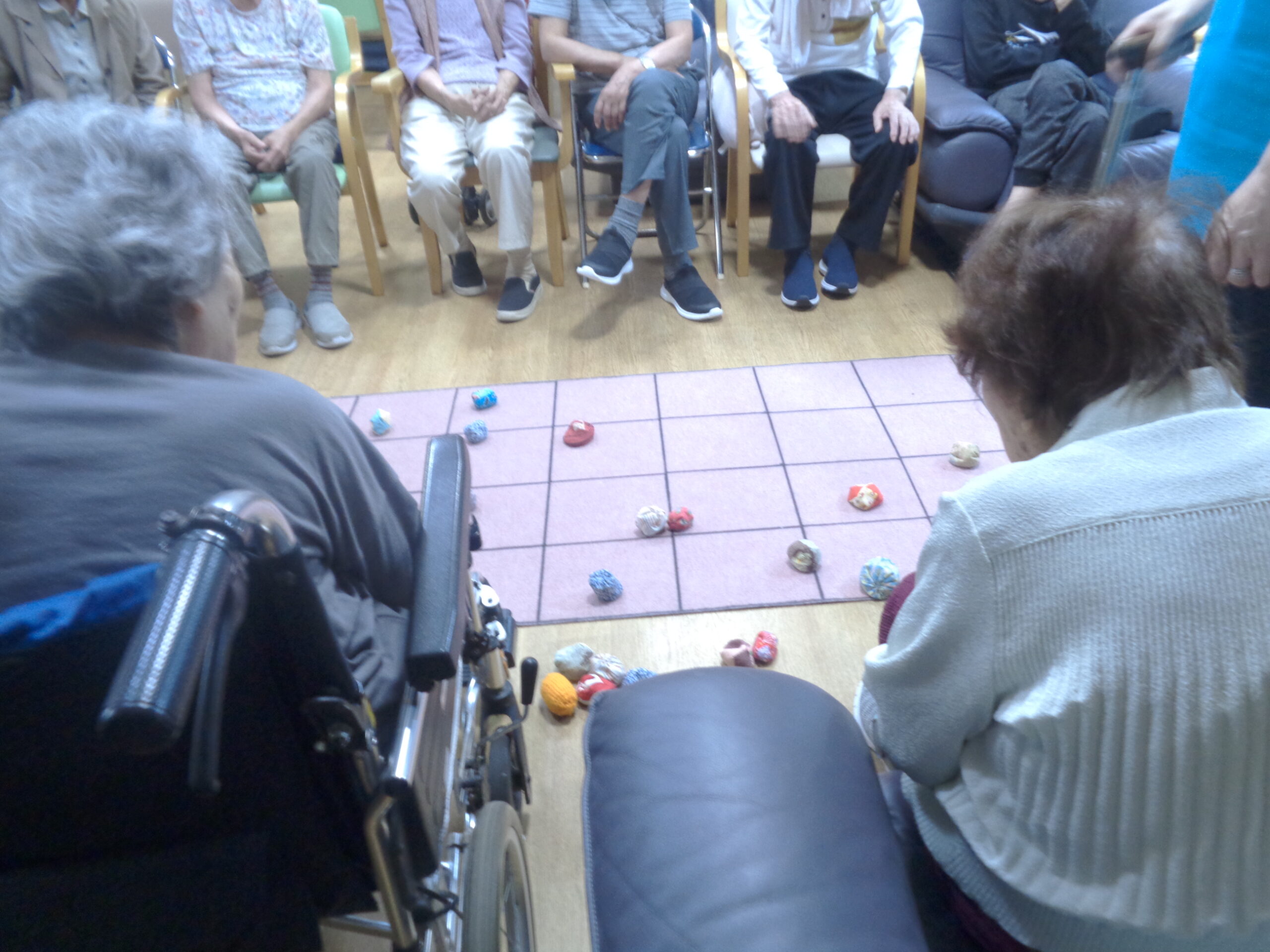 おはじき遊びでは「忘れたよ~」と言われている方もやり出せば皆さん目の色が変わり、身体は