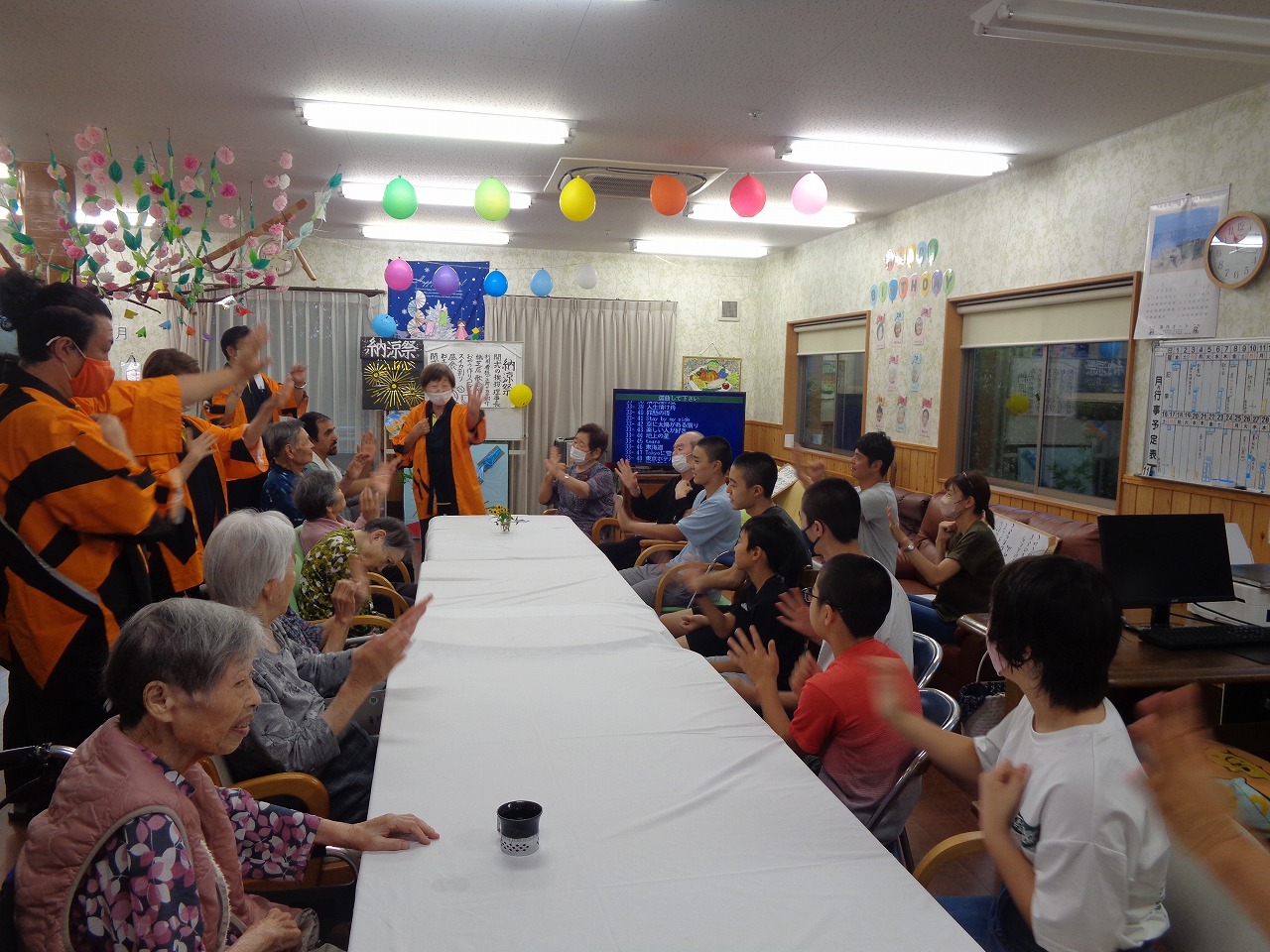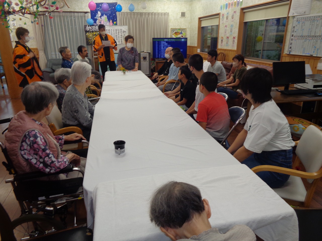 開きまして利用者様、職員一同楽しみました❕ 夏祭りの醍醐味、盆踊りも踊って涼しい室内で