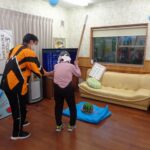 ご利用者様の皆さん、足腰を鍛える運動をご自身のペースで頑張っておられます。