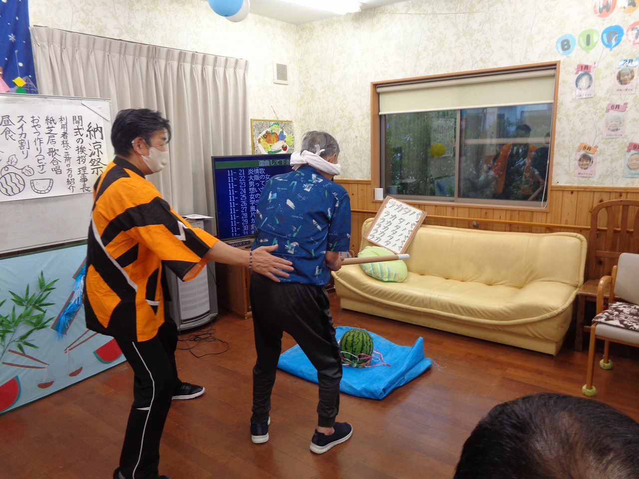 います。デイサービスでは熱中症対策をしながら夏の暑さに負けぬよう日々を楽しんでいますよ🤣
