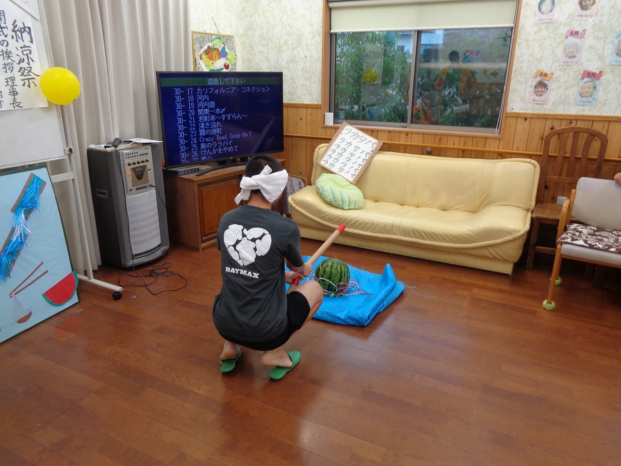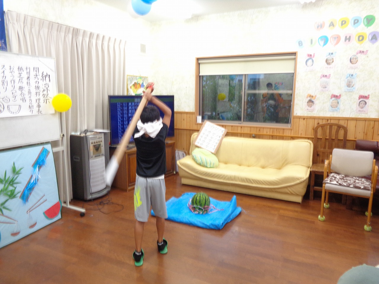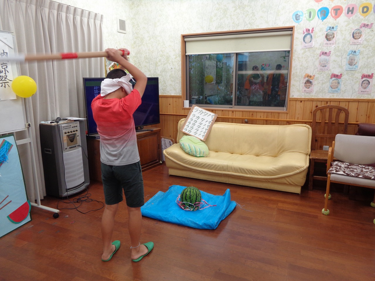 そしてスイカ割りもしましたよ🍉「前」「後ろ」「右」「左」「そこそこそこ」とみんなで声掛けを