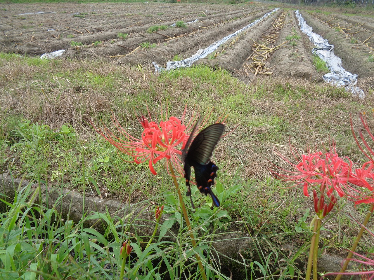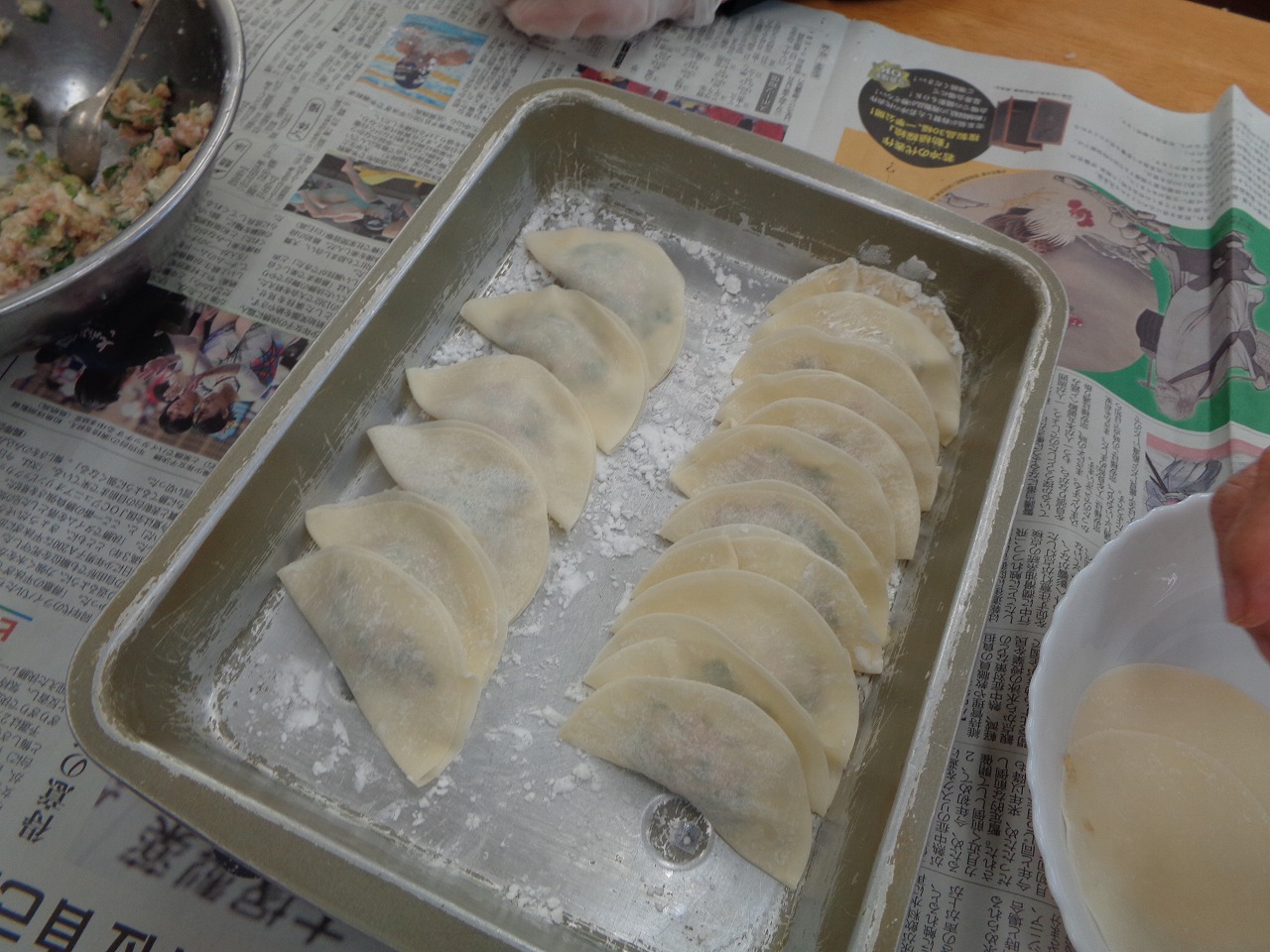9月になって陽射しも柔らかくなってきたので近くに散歩に出かけました。綺麗な彼岸花にアゲハ蝶が停まってました。3枚目の写真は利用者の皆様方が手作りされた餃子です。