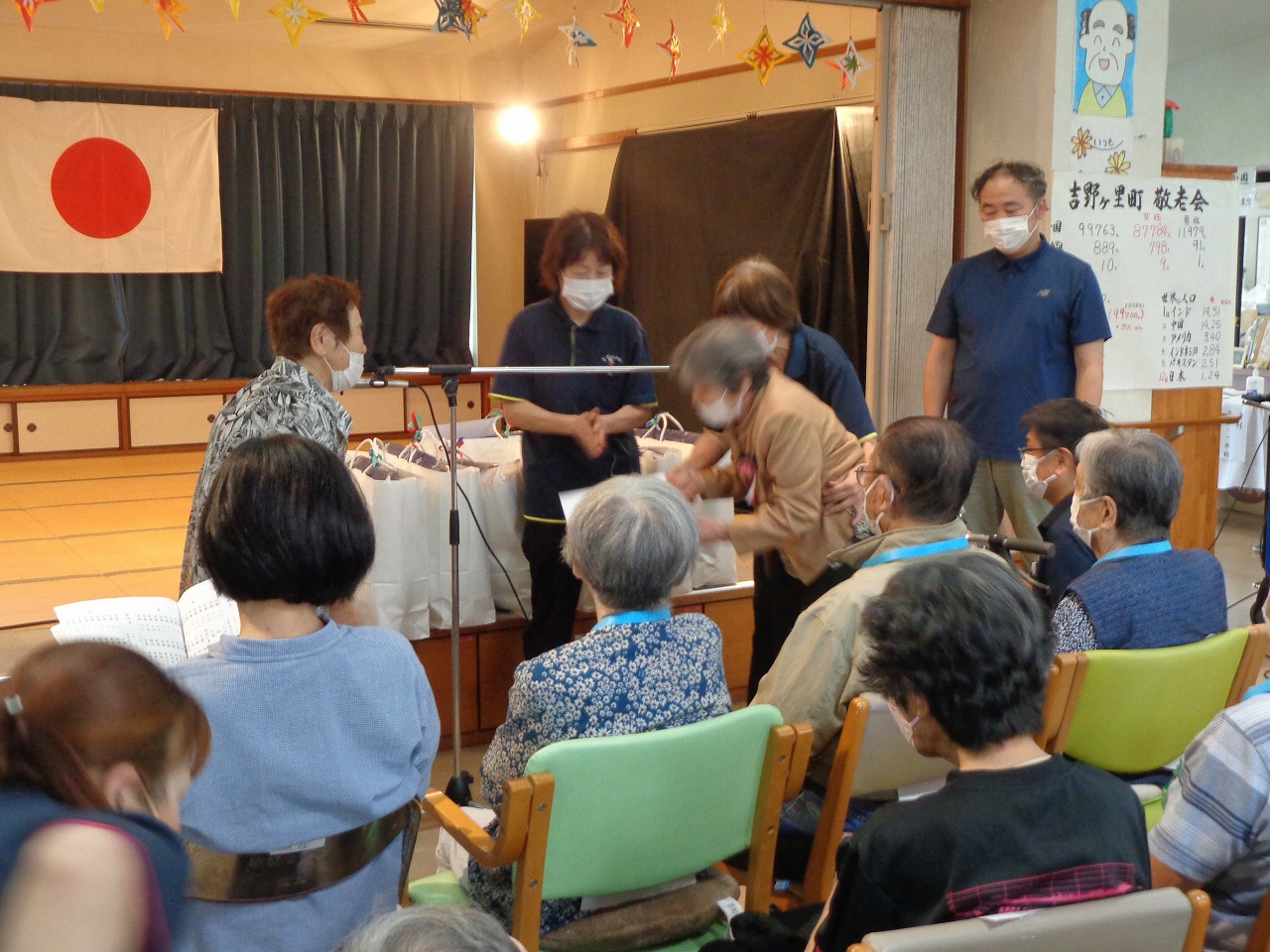 施設長から表彰をされたり、抽選会では商品券や商品が当たったりと