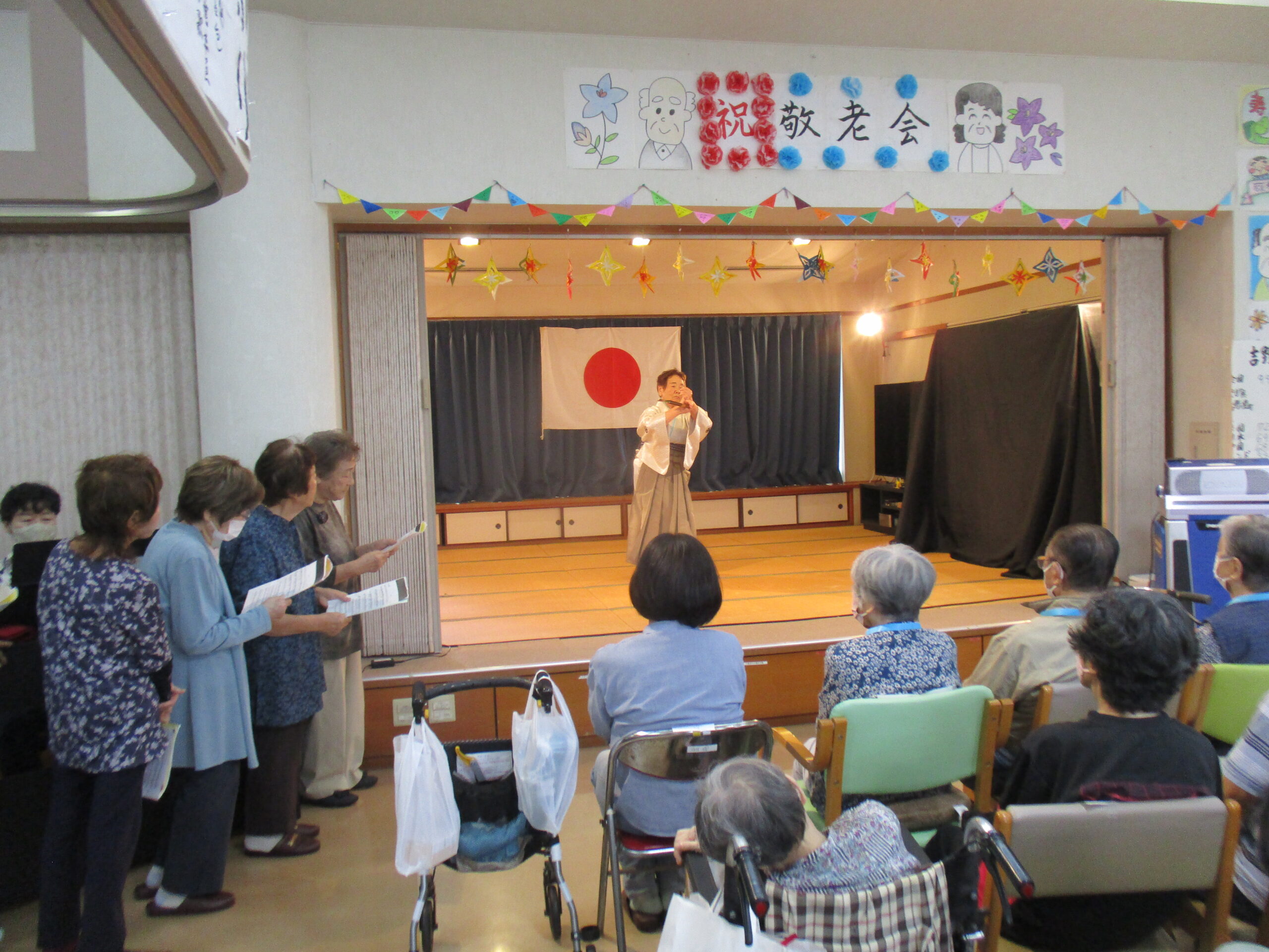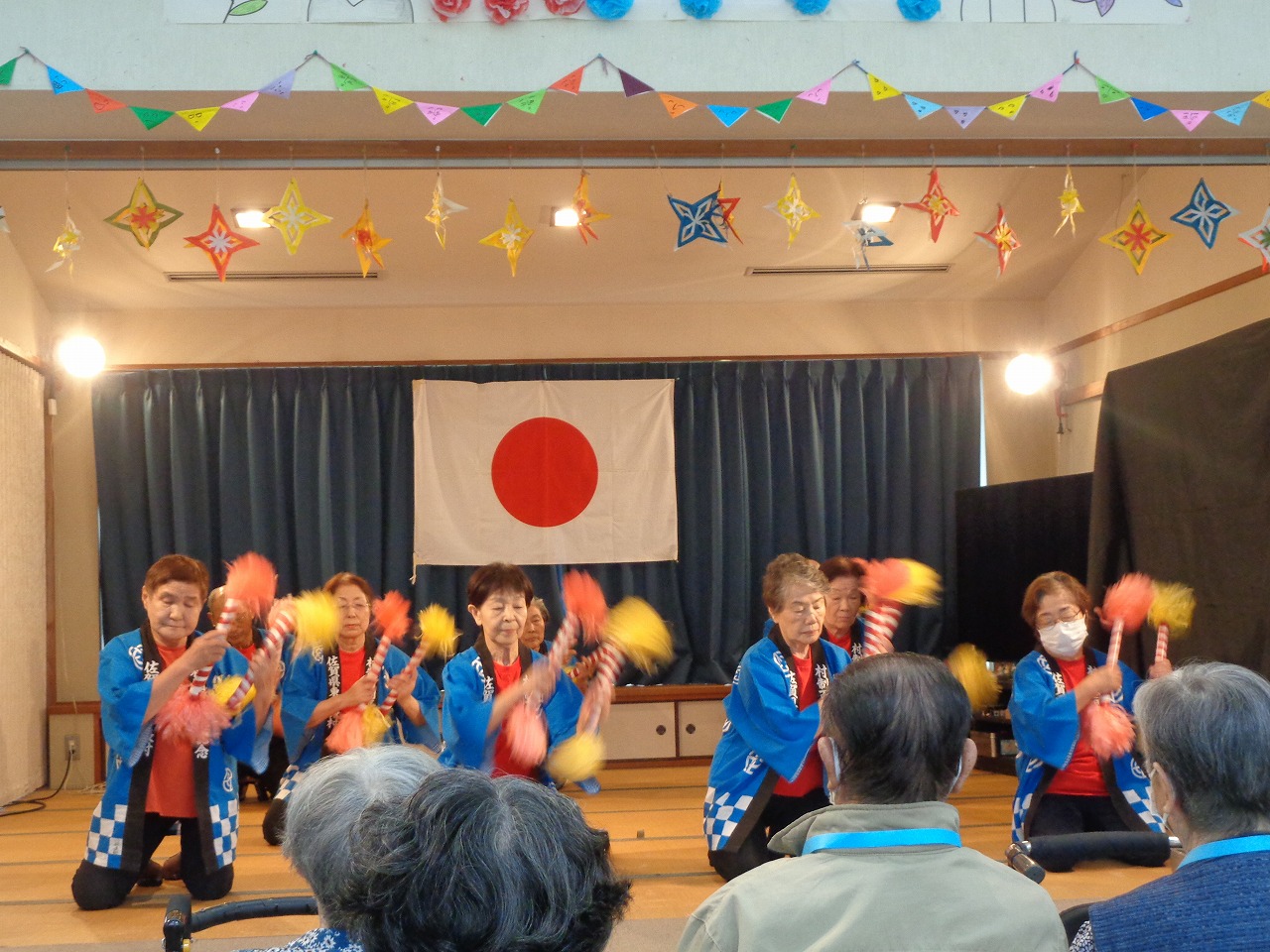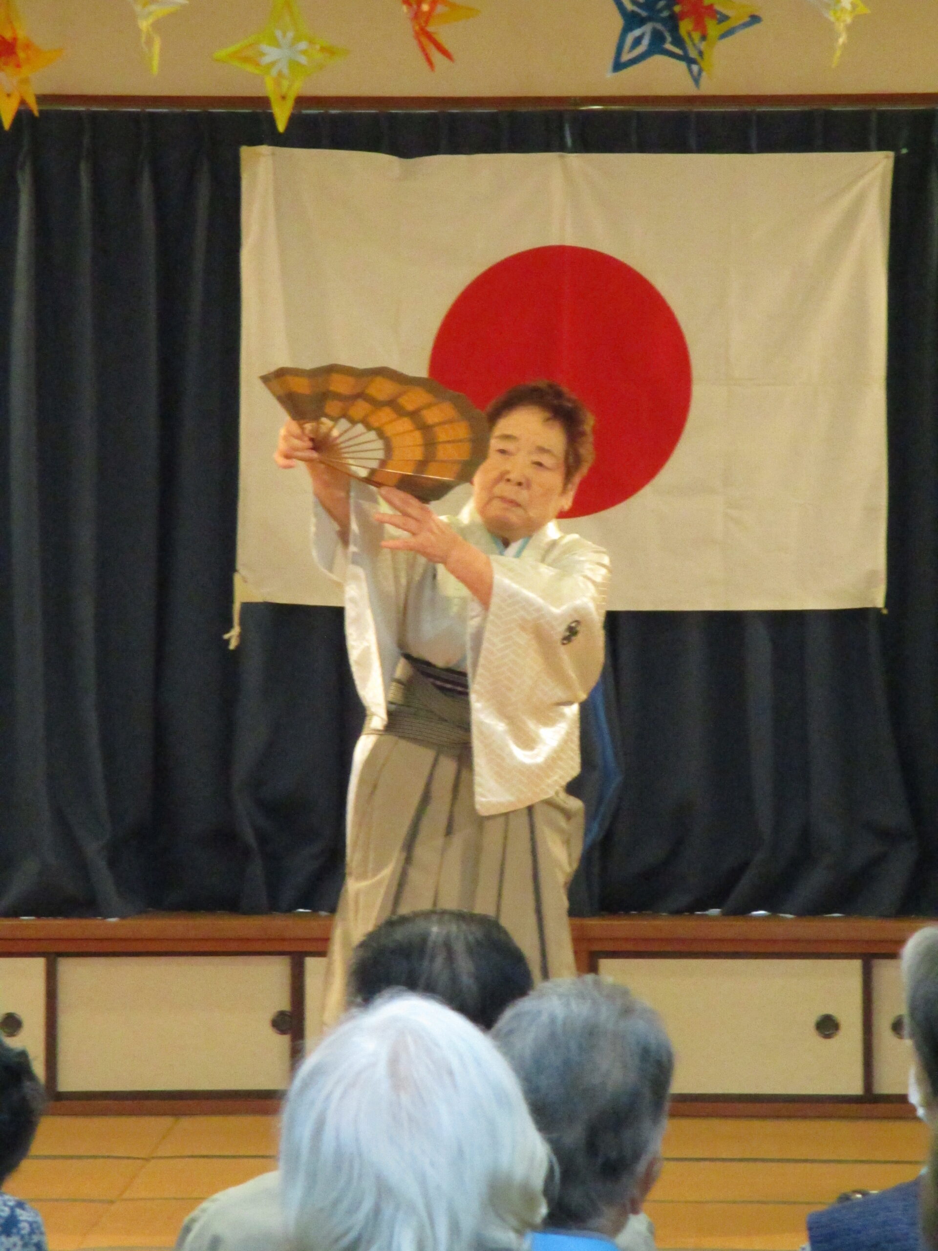 理事長の祝舞い。 くろーばーの会の皆さん 利用者の皆様、ステージ