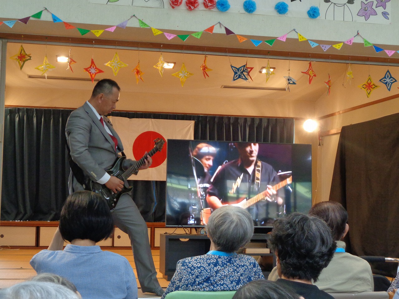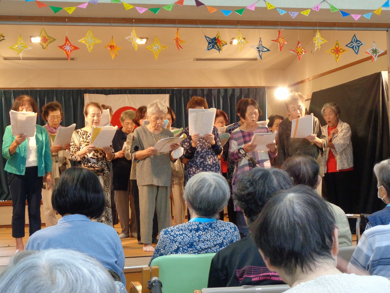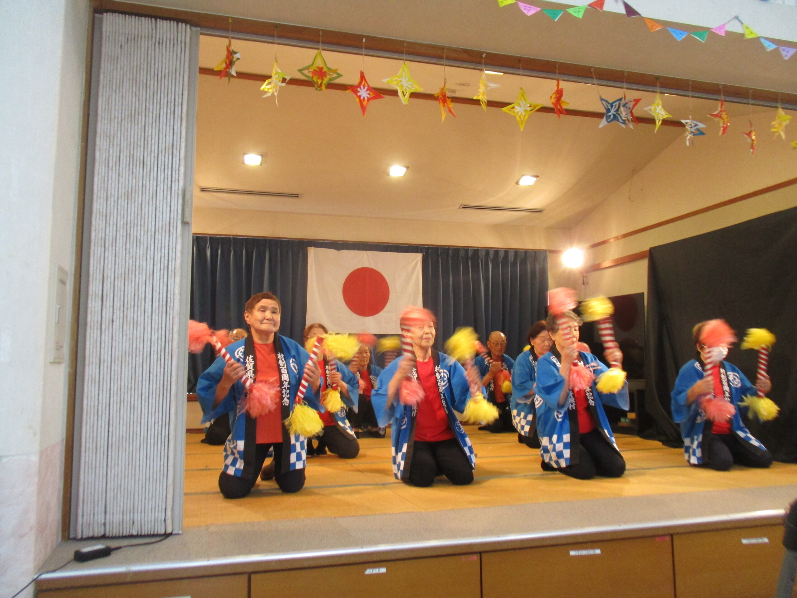 理事長の祝舞い。 くろーばーの会の皆さん 利用者の皆様、ステージ