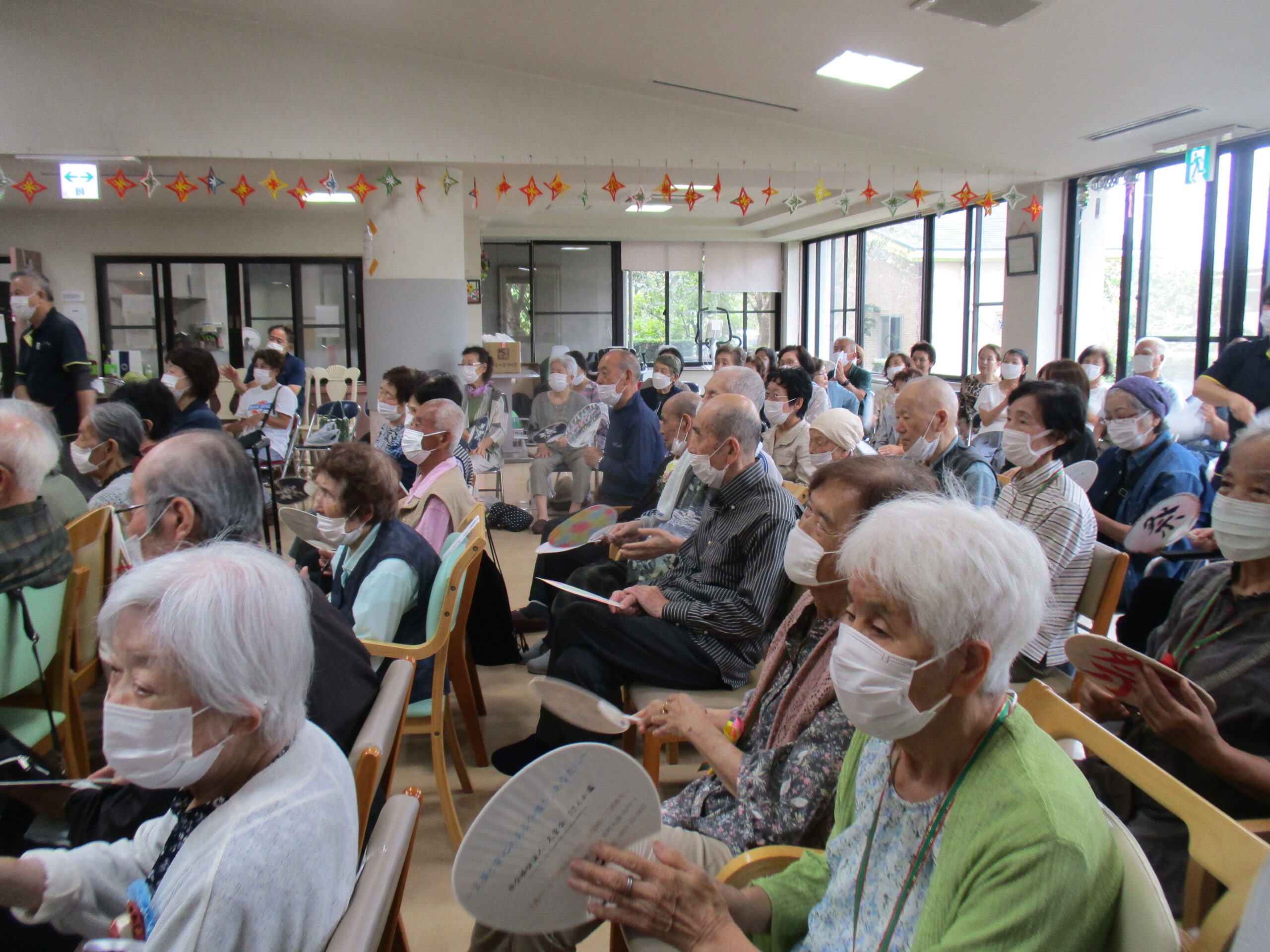 利用者様皆さん、琉球三線の音色を聴き真剣に観ておられました。