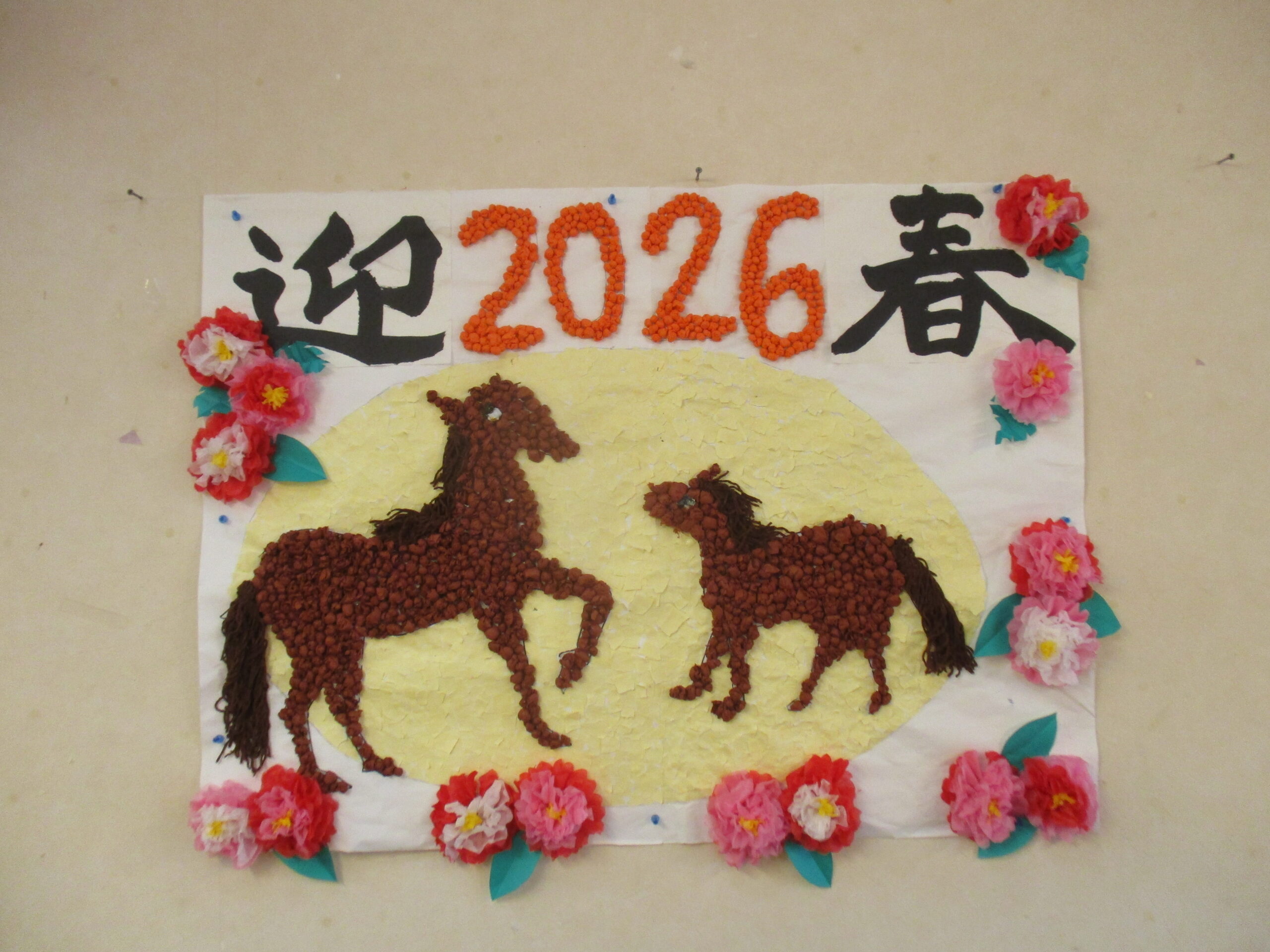 干支の馬は花紙を丸めて作りました。