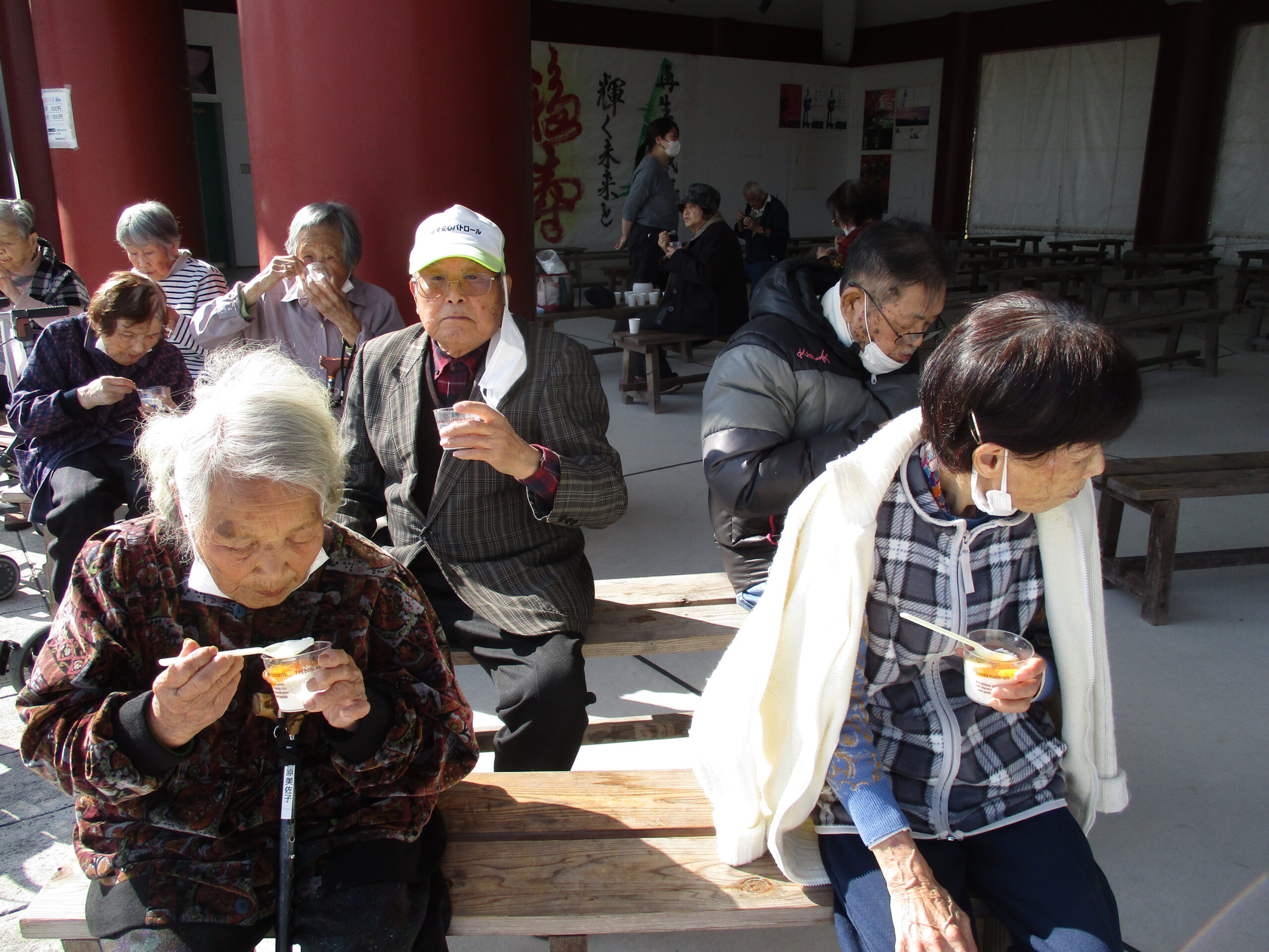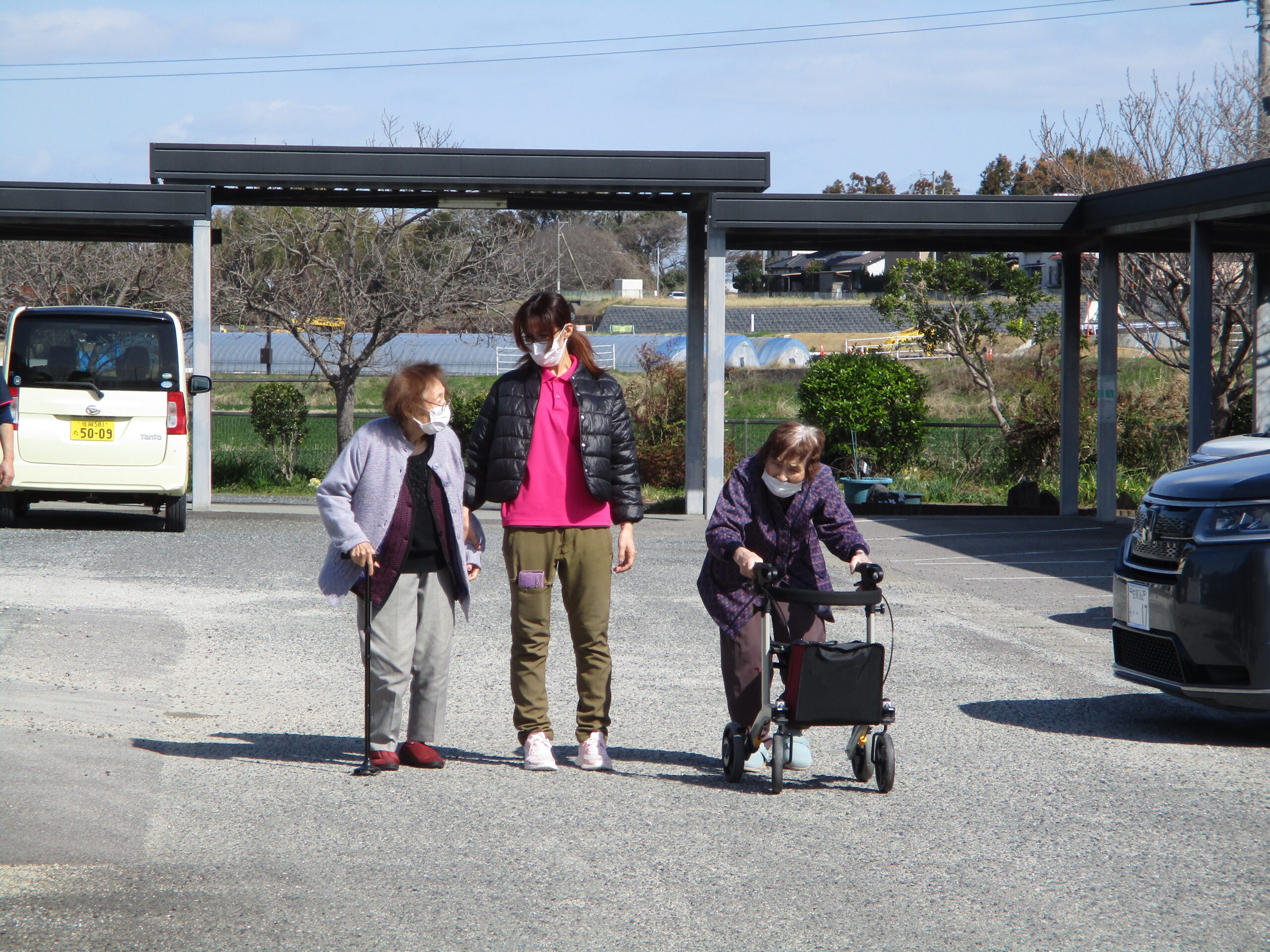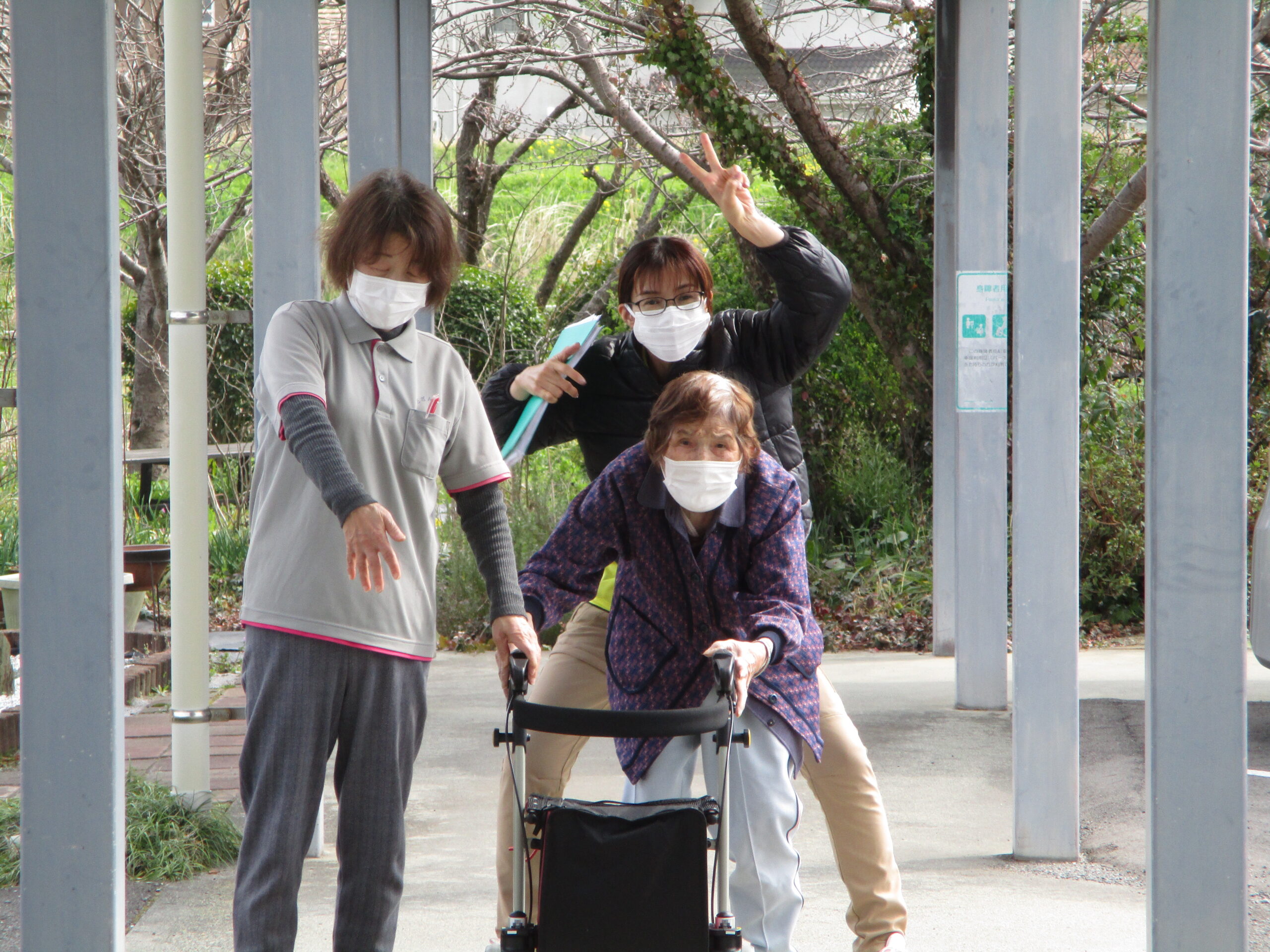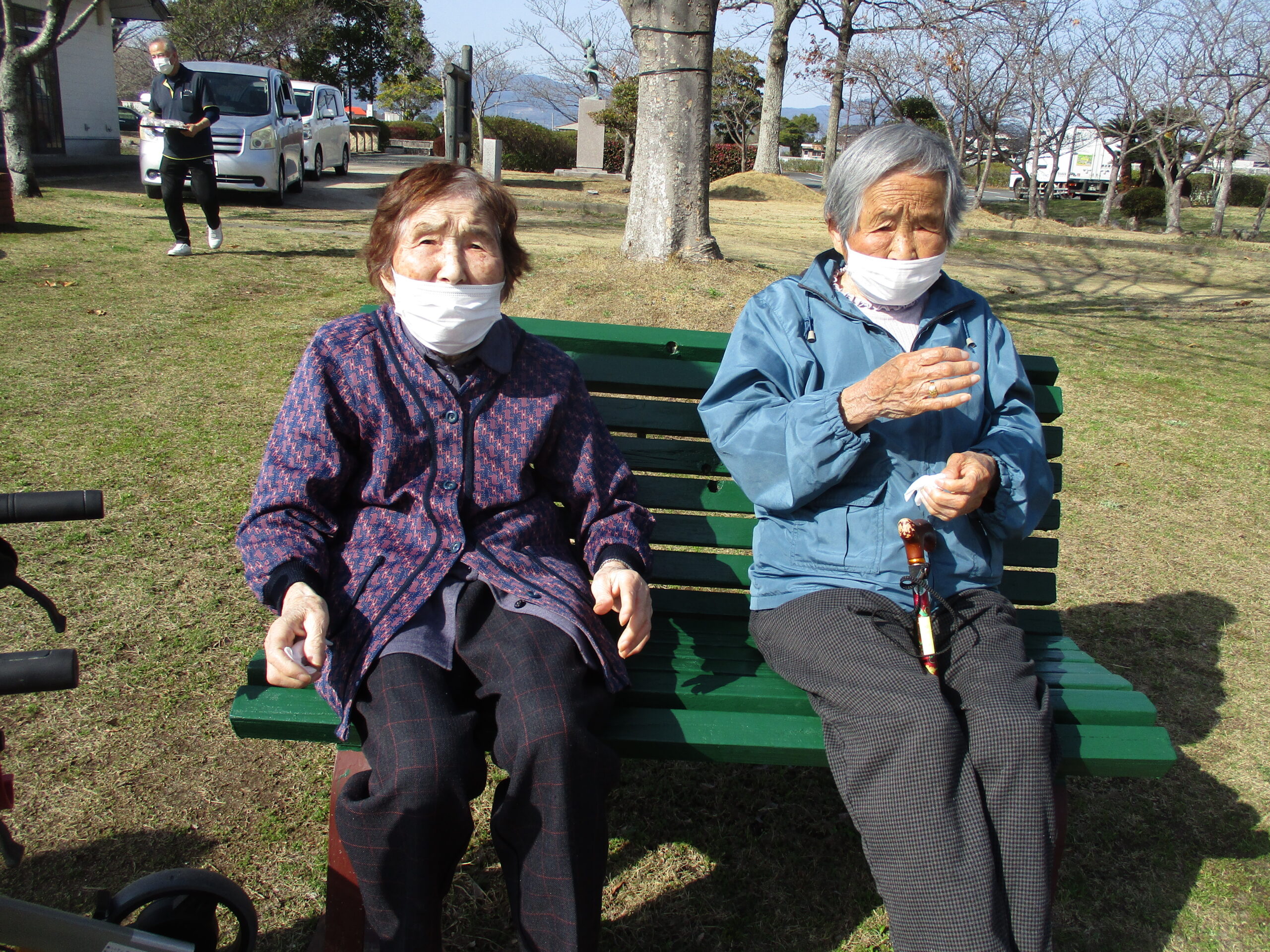 気温が高かったり風の無い日は外での活動を楽しまれるのですが肌寒い日は室内で料理の下拵えやカードゲームで脳の活性化を図っておられます。天気が良くて過ごしやすい日にはお買い物や梅の在花見学にお出掛けしたり楽しんでいただけたようです。